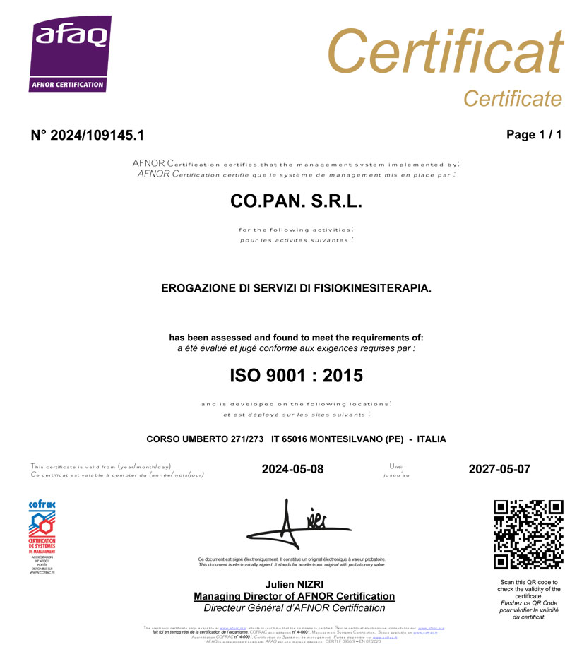 Certificazione AFNOR ISO 9001